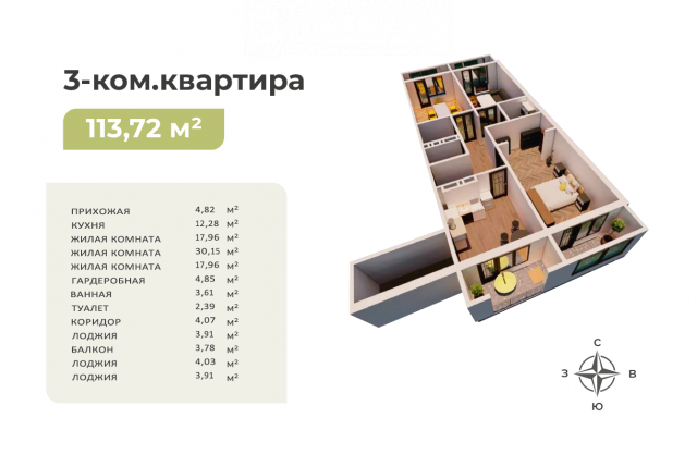 3-комнатная квартира, 114 м, ЖК ЭкоЛайф, Кок-Жар