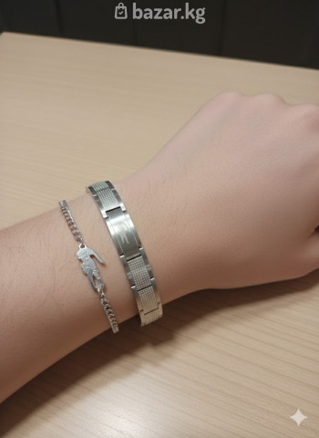браслетов из нержавеющей стали в подарочной коробке Состав набора: - Широкий браслет с геометрической фактурой и центральной вставкой. Гладкие полированные секции чередуются с тиснёной сеткой, создавая выразительный контраст. Замок‑застёжка скрытый, звенья комфортно облегают запястье. - Тонкий цепочный браслет с фигурным подвесом. Ажурная якорная цепочка и плоская подвеска силуэтной формы придают изделию лёгкость; длина регулируется хвостиком‑удлинителем с шариком на конце. Особенности: - Материал: нержавеющая сталь с серебристым глянцевым покрытием. - Гипоаллергенная сталь, не темнеет и устойчива к влаге — подходит для повседневной носки в любую погоду. - Унисекс-дизайн: можно носить по отдельности или комплектом. - Универсальная посадка: широкий браслет звеньевой конструкции, тонкий — с регулировкой длины. - Поставляется в жёсткой подарочной коробке красного цвета с белой внутренней отделкой. Идея использования: - Повседневный аксессуар, акцент к деловым и кэжуал‑образам. - Готовое решение для подарка благодаря упаковке и лаконичному дизайну.