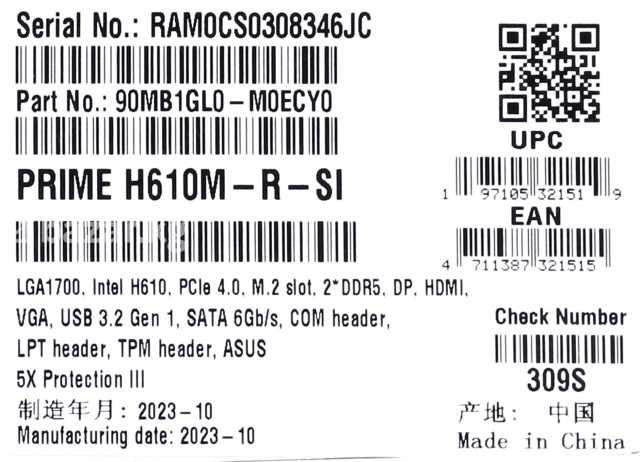 Мат плата ASUS PRIME H610M-K D4/ i3-14100F / DDR4 8GB x 8GB 16GB=26 600 Сом