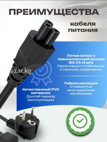 ⚡Кабель питания для зарядных устройств ноутбуков ⚡Прочная изоляция, износостойкое исполнение, длинна 1.5 метра ⚡Качественный и прочный ⚡Совместим под разные бренды ⚡Acer/ Asus/ Dell/ Lenovo/ Hp/ Sony/ Dell/Toshiba/ Msi/Fujitsu/Samsung и так далее 🟣Цена 200 сом 🚚Есть доставка по городу и в регионы