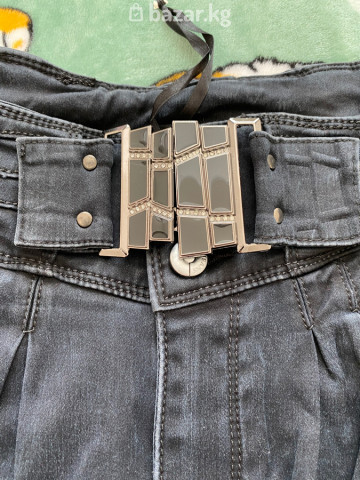Джинсы женские с высокой посадкой и широким ремнем - Цвет: темно-серый/графит с эффектом легкого выбеливания по бедрам и коленям - Посадка: высокая, корсетный пояс с декоративной прострочкой - Ремень: широкий съемный ремень в тон с крупной металлической пряжкой и заклепками - Крой: облегающие зауженные штанины (skinny/слим) - Детали: складки у пояса спереди, два передних прорезных кармана с декоративными заклепками, кокетка сзади - Материал: деним со стрейчем (эластичный, держит форму) - Стиль: универсальные — подчеркивают талию, хорошо сочетаются с кроп-топами, свитерами и жакетами Идеальны для повседневных образов и вечерних выходов благодаря акцентному ремню и высокой посадке. Своя цена 2000 сом, цена со скидкой 1500 сом. По наличию размеров уточняйте по WhatsApp: +996 506 503 508