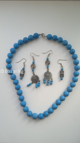 ожерелье из бирюзы СССР и 2 пары серёжек в этническом стиле 2000
