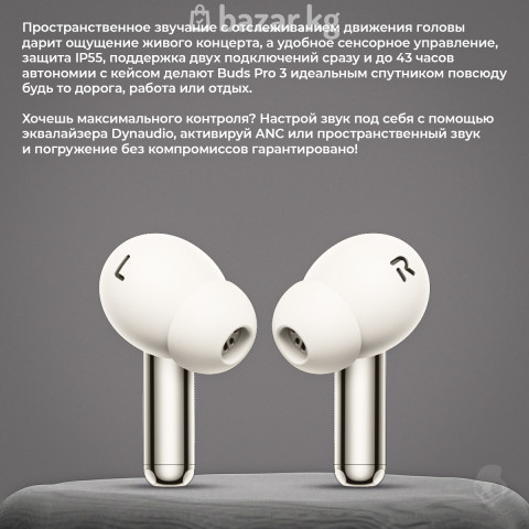 Компания OnePlus представляет усовершенствованные беспроводные наушники Buds Pro 3, объединяющие инновационные технологии, изысканный дизайн и выдающееся качество звучания. Мастерская настройка для великолепной звуковой картины от компании Dynaudio - специалистов по звуку, которые стоят за созданием знаменитых прецизионных студийных мониторов. Благодаря двухдрайверной акустической системе с 11мм низкочастотным динамиком и 6мм высокочастотным твиттером каждый оттенок композиции передаётся с исключительной точностью. Поддержка аудио высокого разрешения (Hi-Res Audio) и кодек LHDC 5.0 обеспечивают битрейт до 1 Мбит/с и частоту дискретизации до 192 кГц, открывая пользователю доступ к звуку студийного уровня. Активное шумоподавление (ANC) адаптивного типа с глубиной до 50 дБ, а также усовершенствованная система фильтрации голоса. Наушники кроме того впечатляют и автономностью: до 43 часов воспроизведения с кейсом и до 10 часов работы самих наушников от одной зарядки. Поддержка быстрой и беспроводной зарядки позволяет всего за 10 минут подзарядки получить до 13 часов звука, идеальное решение для активного ритма жизни. Buds Pro 3 - это гармония формы и технологии, где каждый звук создан для эмоций. Безупречное качество, утончённый дизайн и интеллектуальные возможности превращают прослушивание музыки в искусство, доступное каждый день. 👍ГАРАНТИЯ 3 МЕСЯЦА. ЕСЛИ НАУШНИКИ СЛОМАЮТСЯ, ПОЧИНИМ ИЛИ ЗАМЕНИМ ДЕТАЛИ ЗА СВОЙ СЧËТ 🔄14 ДНЕЙ НА ВОЗВРАТ — ПОКУПАЙТЕ БЕЗ РИСКА! ВЕРНИТЕ ИЛИ ОБМЕНЯЙТЕ ТОВАР ПРИ УСЛОВИИ СОХРАНЕНИЯ ТОВАРНОГО ВИДА — ЛЕГКО И ПО ЗАКОНУ 💳РАССРОЧКА С MPLUS — 0% ПЕРЕПЛАТ! ОФОРМИТЕ РАССРОЧКУ ДО 3 МЕСЯЦЕВ БЕЗ ПРОЦЕНТОВ И ПЕРЕПЛАТ — ЛЕГКО И УДОБНО ЧЕРЕЗ MBANK 🇺🇸ПОСТАВКИ ИЗ США. ТОЛЬКО ОРИГИНАЛЬНАЯ ПРОДУКЦИЯ 🇰🇬ДОСТАВКА 0 СОМ. ПО БИШКЕКУ И ВО ВСЕ РЕГИОНЫ КЫРГЫЗСТАНА ПРИ ПОКУПКЕ НА ЛЮБУЮ СУММУ 🧾ВЫДАЁМ ККМ ЧЕКИ / ЭСФ НА КАЖДЫЙ ТОВАР. ОФОРМЛЯЕМ КАЖДУЮ ПОКУПКУ ОФИЦИАЛЬНЫМ КАССОВЫМ ЧЕКОМ ИЛИ ЭСФ ПО ВСЕМ ПРАВИЛАМ 📍ЦУМ-1 (СТАРЫЙ ЦУМ), 6 ЭТАЖ, ОТДЕЛ А15 🕙11:00-20:00