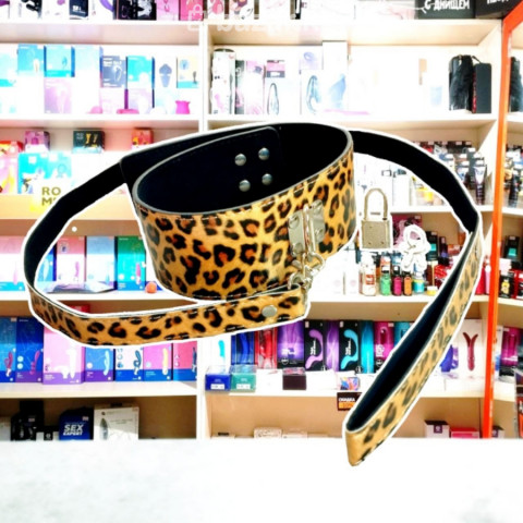 Этот эффектный ошейник с поводком в дерзком леопардовом принте создан для тех, кто ценит сочетание стиля и высокого качества. Плотный материал с благородным блеском отлично держит форму, подчеркивая статусность аксессуара. Главная особенность модели — продуманная система фиксации: застежка дополнена металлическим кольцом, на которое устанавливается замок с ключами. Благодаря нескольким уровням регулировки, ошейник можно идеально подогнать по размеру, а наличие замка гарантирует, что аксессуар невозможно снять самостоятельно без ведома партнера. В комплекте идет прочный поводок в тон, который легко крепится к карабину на передней части ошейника, превращая набор в законченный инструмент для красивых игр в подчинение и контроля.