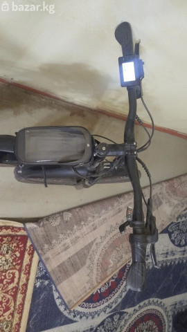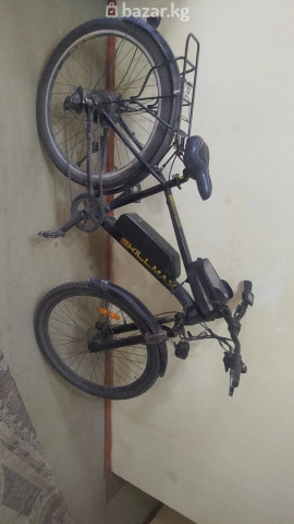 Электровелосипед SkillMax (MTB-формат) Основные характеристики: - Рама: горный тип, стальная/алюминиевая труба с внутренней проводкой, размер под взрослого райдера. - Колёса: 26" с универсальными покрышками для города и грунта. - Привод: многоскоростная трансмиссия с задним переключателем. - Тормоза: ободные V-brake. - Электрооборудование: центрально закреплённый аккумуляторный блок на раме, контроллер и проводка установлены; на руле — дисплей/борткомпьютер с кнопками управления режимами помощи. - Режимы: педалирование с электрической поддержкой и ручной дроссель на руле. - Комплектация: полноразмерные крылья спереди и сзади, багажник над задним колесом, подножка, педали платформы, звонок, светоотражатели. - Руль: установлен сумка-чехол для смартфона/мелочей; грипсы анатомической формы. - Седло: комфортное, с амортизирующим подседельным штырем. - Дополнительно: зарядный порт на батарее, защитный кожух/бокс аккумулятора. Подходит для ежедневных поездок по городу, дач, лёгкого бездорожья и перевозки небольшого груза на багажнике. На дисплее доступна индикация скорости, уровня заряда и режима ассиста.