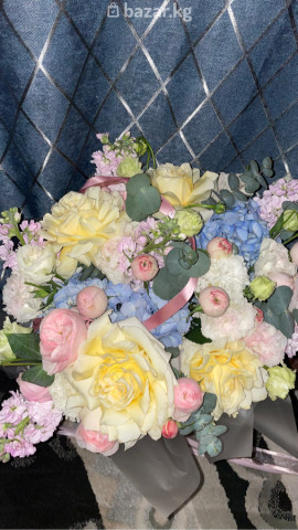 🌸 Продаётся свежий авторский букет (вчерашний) Состав: гортензия, ранункулюсы, розы, маттиола, эвкалипт и другие сезонные цветы. Состояние отличное, хранится в прохладном месте. Очень нежная и дорогая композиция. Цена: 5500 сом (возможен небольшой торг). Самовывоз Бишкек.