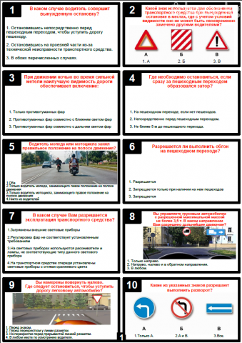 Шаблон экзаменационных билетов по ПДД КР