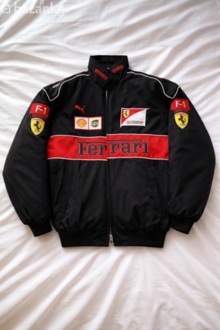 Куртка Ferrari F1 Team, мужская. - Цвет: черный с красной вставкой и контрастным кантом - Воротник-стойка с вышивкой Ferrari - Логотипы и нашивки: Ferrari, F1, Puma, Shell, UPS, Scuderia Ferrari (вышивка/аппликации спереди и на рукавах) - Манжеты и нижний край: эластичные трикотажные - Карманы: два боковых на молнии - Посадка: свободная, спортивный крой Отличается ярким командным стилем Scuderia Ferrari, теплая и удобная для повседневной носки и автоспортивных мероприятий.